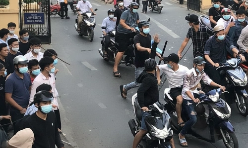 Dùng hung khí nguy hiểm (dao, gậy sắt, chai thủy tinh…)